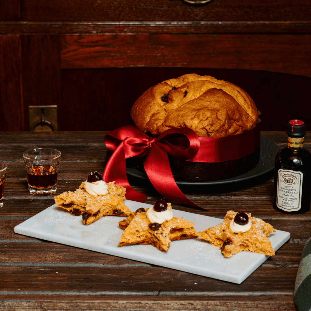 Un’atmosfera magica pronta ad accogliervi per offrirvi un assaggio dell’irresistibile Panettone alle Amarene e Aceto Balsamico e dei golosi Cioccolatini.